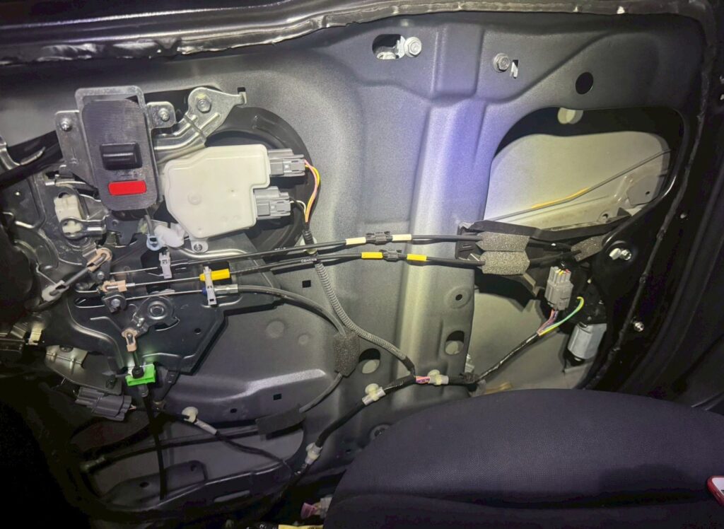 何はなくともドアを開けなければ修理もできませんが、完全にどの操作も受け付けませんので、ドアが閉まったまま内張りやユニットを強引に外します。(内張り等に傷が入る可能性が極めて高い事は事前に快諾していただいてます。)