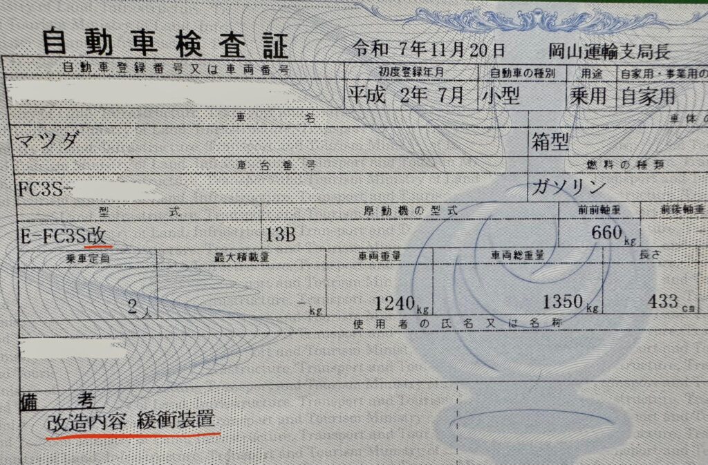 公認取得はよくご依頼いただく業務の一つですが、現在は主にダイハツ車が多く、ついで昔メインでやっていたシルビア、スカイライン、マークⅡやスープラなどがそれに続き多いのですが、今回は滅多にないFC3Sでの公認取得のご依頼です。