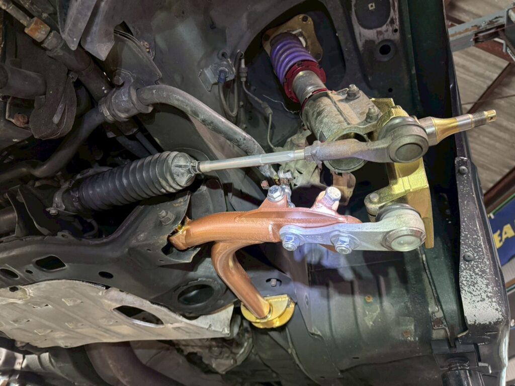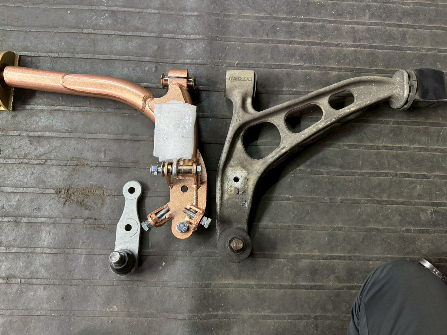 スーパーアングルキット(ロアアーム、ナックル、タイロッドスペーサー)というドリフト用の商品です。書類無しですので、強度検討をする為に専門機関へパーツを送り試験を行なってもらいました。