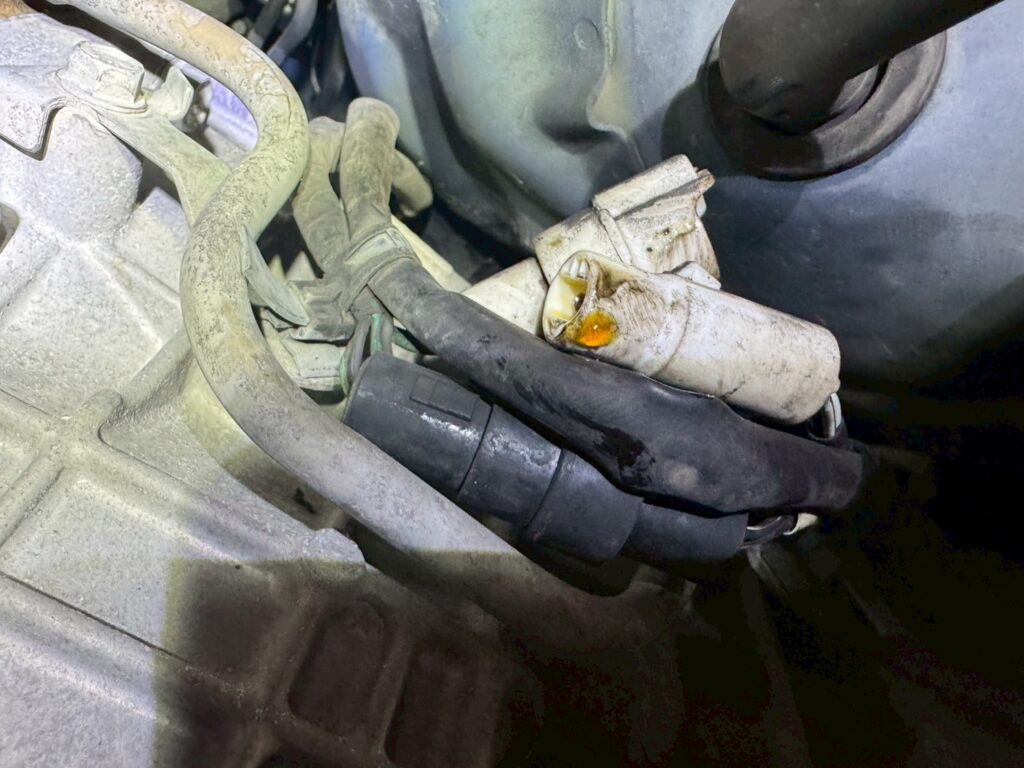 んんん??? カプラー内部にオイルが。汚れ具合や匂いからしてミッションオイルです。