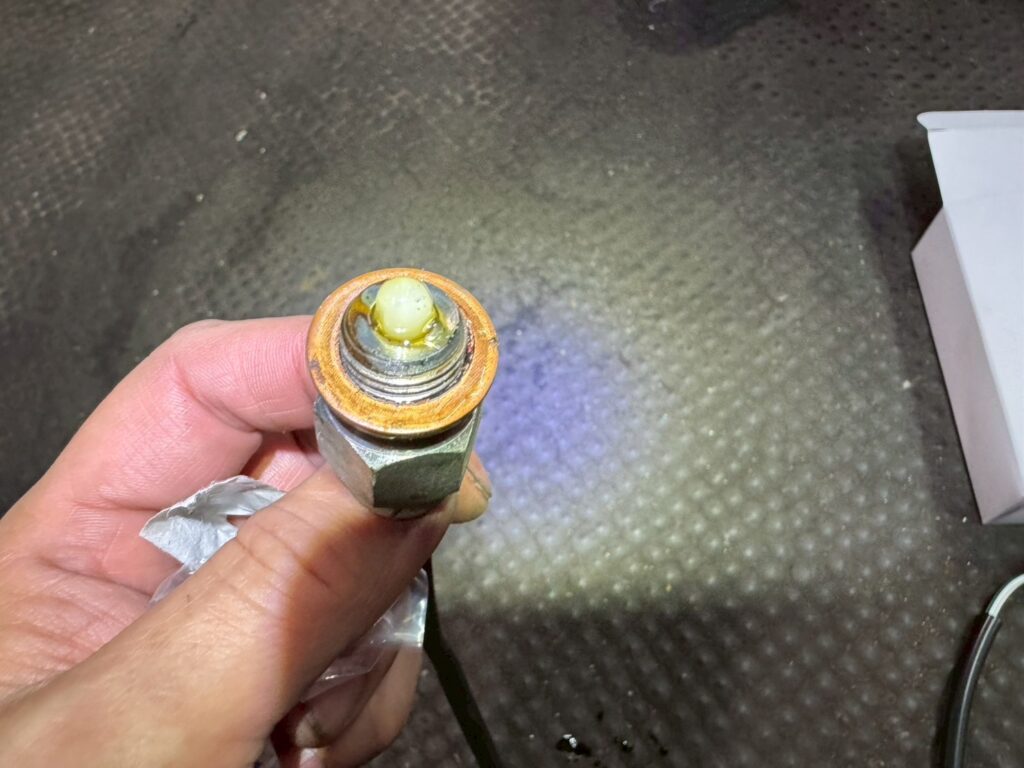 カプラー内部のオイルは、スイッチの内部から漏れたものがハーネス内部を伝わってカプラー部に溜まったものだと推測します。アカンやん(^^;